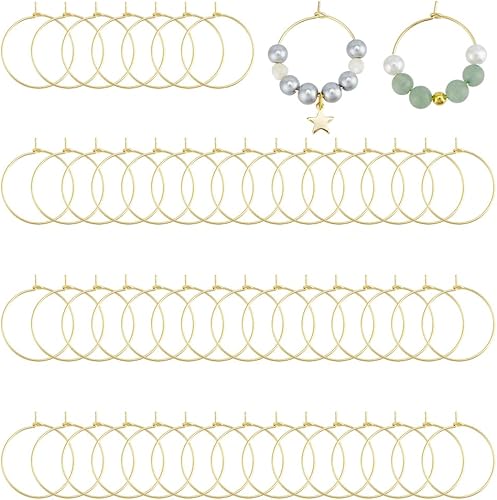 UNICRAFTALE 80pcs Créoles Boucle D'Oreille 18K Plaqué Or 25mm Verre à Vin Breloques Anneaux Pendants Boucle D'Oreille Ronde Boucle D'Oreille Perles pour Bijoux Fête Festival Vin Breloque