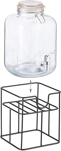 Relaxdays Distributeur de Boisson en Set, Fontaine à Eau 4,2 l, 4 Verres, Support, Jarre à jus avec Robinet, Transparent