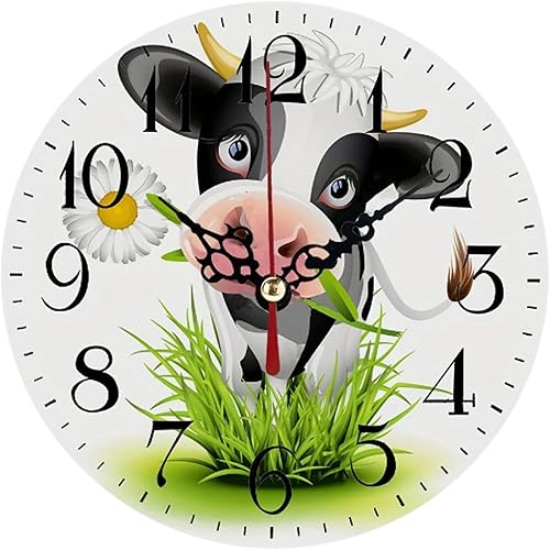 Sharplace Horloge Murale Ronde en Bois avec Motif de Vache, décoration décorative pour Cuisine et Salon, Polyvalente, 30 cm 12 Pouces
