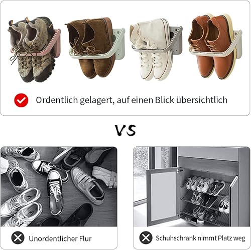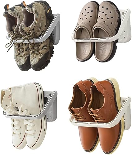 Lot de 4 Supports à Chaussures Pliables - Montage Mural - sans perçage - pour Porte d'entrée, Salle de Bain(Blanc)