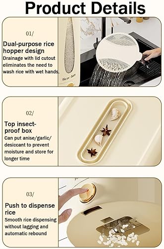 Guangcailun Conteneurs de céréales frais et pratiques pour céréales, céréales, farine, stockage scellé, seau de riz étanche à l'humidité, distributeur de riz ABS 5 kg