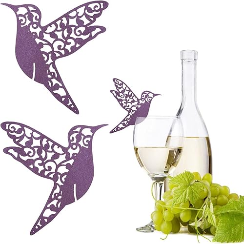 VIFERR Marque-Places de nom de Mariage 50pcs, Marque-Places pour Mariage ou fête, Marque-Places en Forme de Petit Oiseau pour décoration de Table en Verre à vin(Violet)
