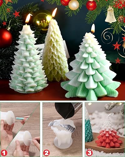 Lot de 3 Moules à bougies de Noël, Moules à Bougies en Forme de Sapin de Noël, 3D Moule Bougie Silicone, Moule Bougie Sapin, Moule à Bougie Aromatique Bricolage, pour Bougies Parfumées, Savon