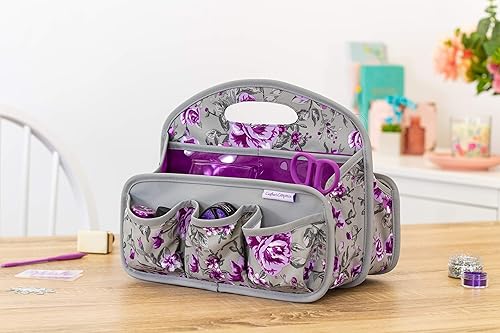 Crafter's Companion CC-STOR-POTOTE Sac de Rangement Portable – Motif Floral – Gris et Violet, Taille Unique