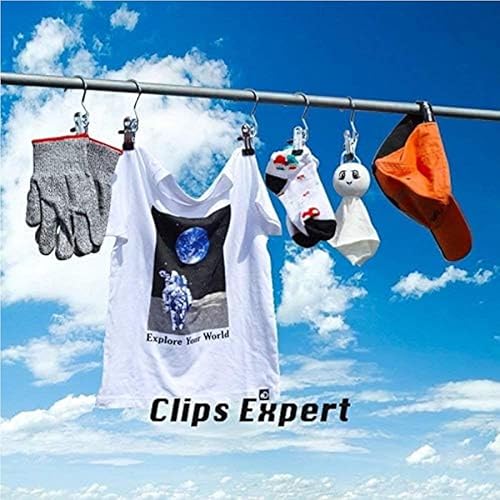 Cintre Pince Crochets,20pcs Crochet à Linge Portable Pinces à Linge en Métal Antidérapant - Pivotant à 360 ° Crochet à Linge Portable Acier Inoxydable pour Rotatifs Epingle Clip Rideaux Cintre Pince