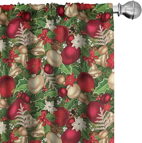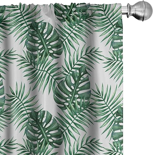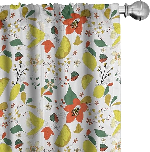 ABAKUHAUS Floral Ensemble de 2 Panneaux de Rideaux, Feuilles de Printemps Citrons, Traitement de Fenêtre Léger, 150 cm x 225 cm, Rouge Jaune Vert Forêt