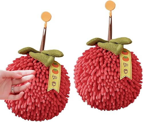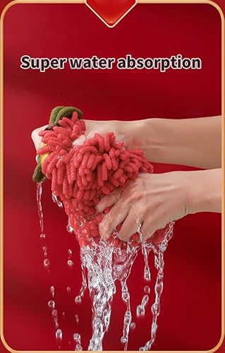 VIVASIGHT Lot de 2 essuie-mains en chenille doux et absorbants – Jolies serviettes décoratives avec boucles de suspension pour cuisine et salle de bain (2, rouge 2), taille S