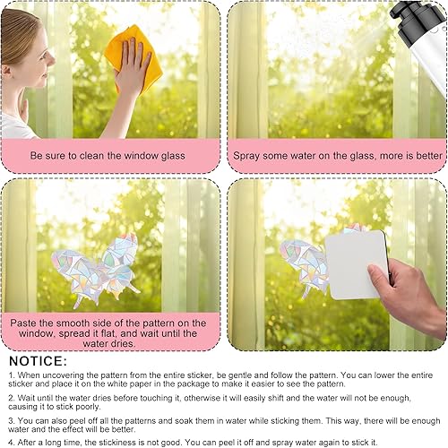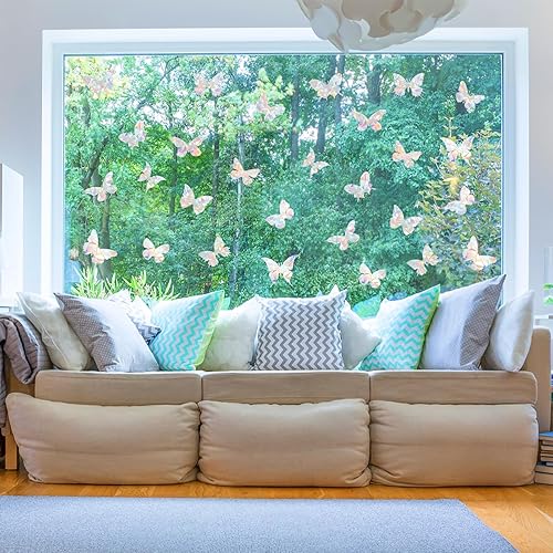 4 feuilles/56pcs Autocollant Anti-Collision pour Oiseaux de Fenêtre, Autocollant Attrape-Soleil pour fenêtre Autocollants Statiques pour Fenêtre Papillon Autocollants de Fenêtre Arc-En-Ciel