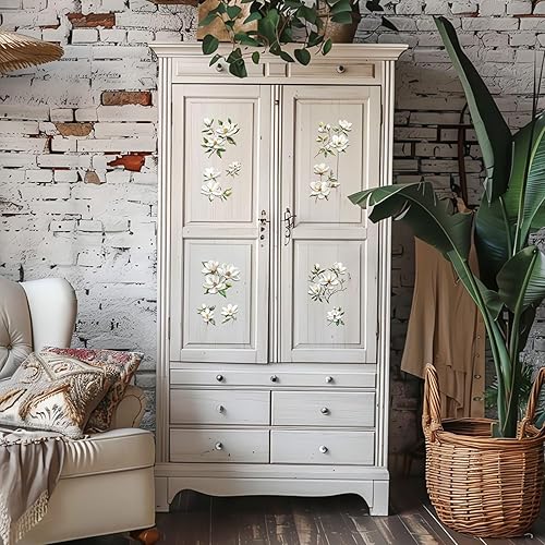 HICOHAND Autocollants de transfert à frotter sur les meubles sur le thème des fleurs, pour travaux manuels en bois, bibliothèque, table, armoire, bureau, décoration d'intérieur (magnolia)