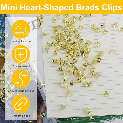 Lot de 220 mini pinces à motif en forme de cœur en métal 9 mm - Doré - Pour bricolage, scrapbooking, bricolage, fabrication de cartes, artisanat, enfants