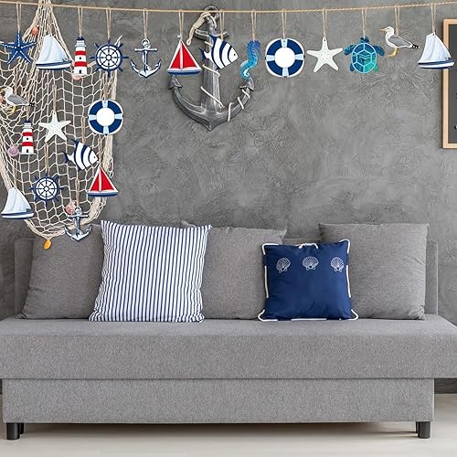 JINJUMEI Lot de 24 Pendentifs Maritimes, Décoration à Suspendre Maritime pour Méditerranée, Décoration Nautique, kit de Décoration Maritime, Étoile de Mer, Bateau, Ancre, Phare, Poisson