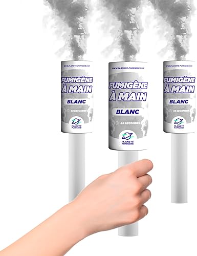 PLANETE FUMIGENE Fumigène Torche a Main 45 secondes couleur Blanc - Lot de 3 - Déclenchement à Mèche, durée 45 sec, fumigene couleur à tenir en Main - torche a main Catégorie F1 - LIVRAISON 24/48H