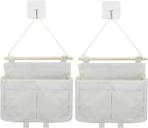 Mewflew Lot De 2 Organiseurs De Rangement Suspendus De Grande Capacité Pliables avec 2 Crochets pour Salle De Bain, Bureau Ou Chambre À Coucher (Blanc)