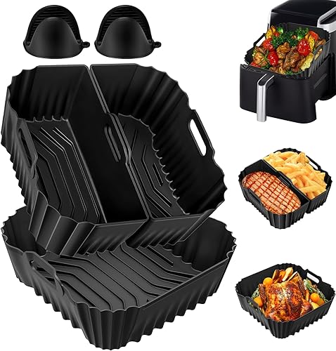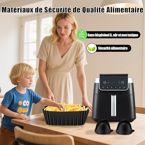 Moule Silicone Air Fryer pour Philips Air Fryer Série 2000 6,2L, Ninja AF140EU 4,7L, 5 Pièces Réutilisable Carré Moule Friteuse avec 1 Paire Gant de Cuisine Silicone pour Cecotec/Cosori/Russell Hobbs