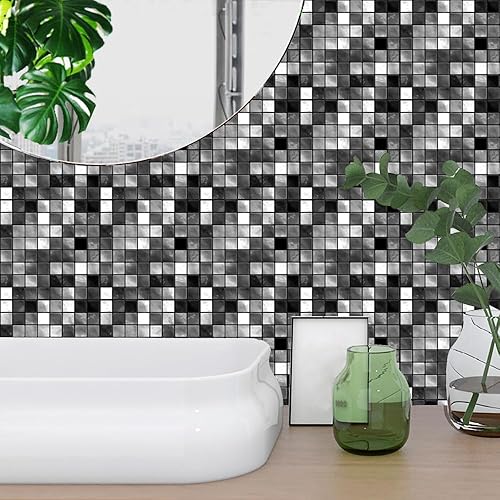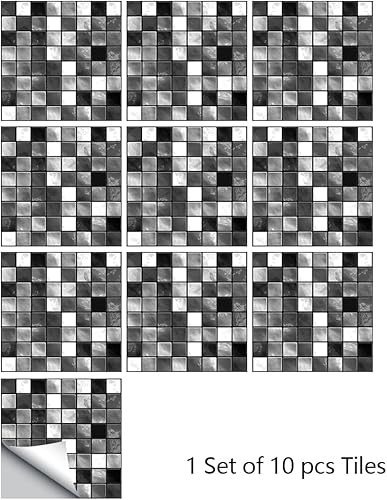 Stickers Muraux Cuisine Mosaïque Gris Argenté Credence Adhesive pour Cuisine Meuble Carrelage Adhesif Mural Salle de Bain Décor Dalle pvc Adhesive Sol Stickers Carrelage 30x30cm /10 pièces