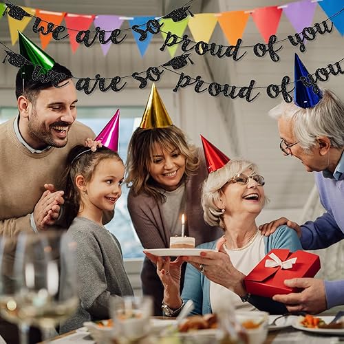 LUMOOM Guirlande de félicitations, décoration de remise de diplôme, paillettes avec motif chapeau de diplômé, décoration de bachelor, examen, remise de diplôme, décoration de fête (noir)