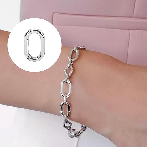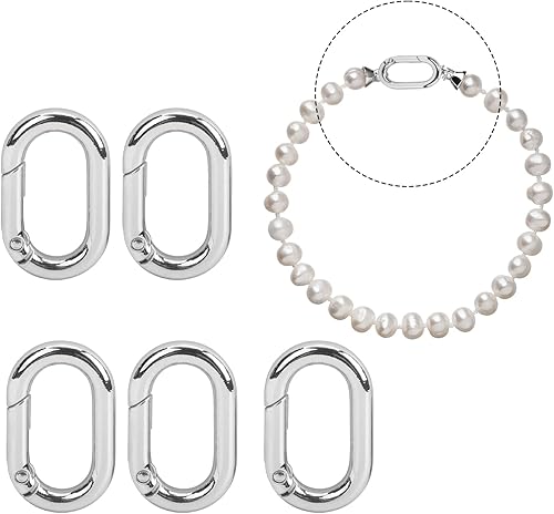 Lot de 5 fermoirs mousquetons ovales argentés - Pour collier, bracelet, bijoux - Fermoir ovale - Mini fermoir à ressort - Pour porte-clés, bijoux, bricolage