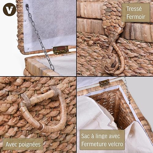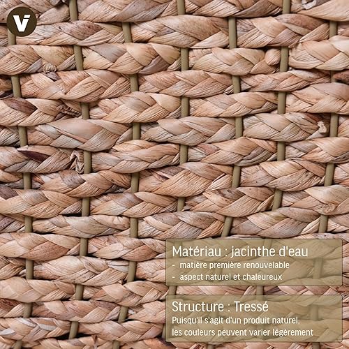 VIVANNO Bac à linge 'Lea' en jacinthe d'eau, Naturel & élégant, Grand, 84x45x45 cm, Polyvalent