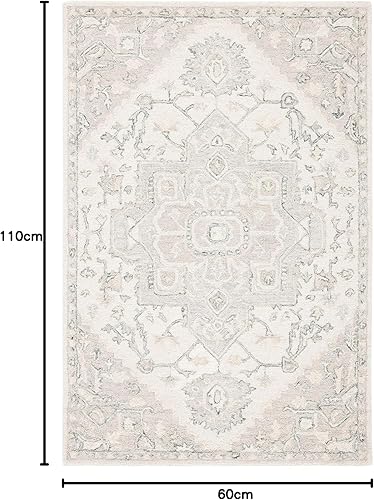 Safavieh Tapis Traditionnel pour Salon, Salle à Manger, Chambre à Coucher - Micro-Loop Collection, Tapis à Poil Court, Ivoire et Beige, 60 x 110 cm
