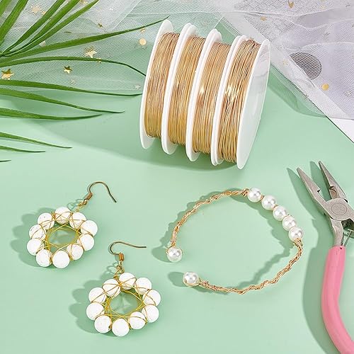 PH PandaHall 80m Fil de Cuivre Plaqué Or carats 14, 22/24/26/28 Fil Artisanal de Calibre, fil de Perles Métalliques, Fil de Bijoux en Or Fil D'Armature pour L'Emballage de Fils