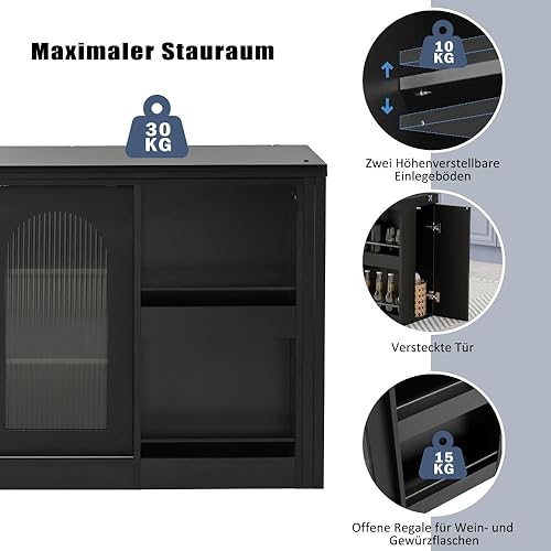 Zubaliya Table de Bar Moderne, Bar Extensible pivotante à 360° avec Rangement, Meuble de Salle à Manger avec Rabattable, avec Porte d'armoire en Verre (Noir)