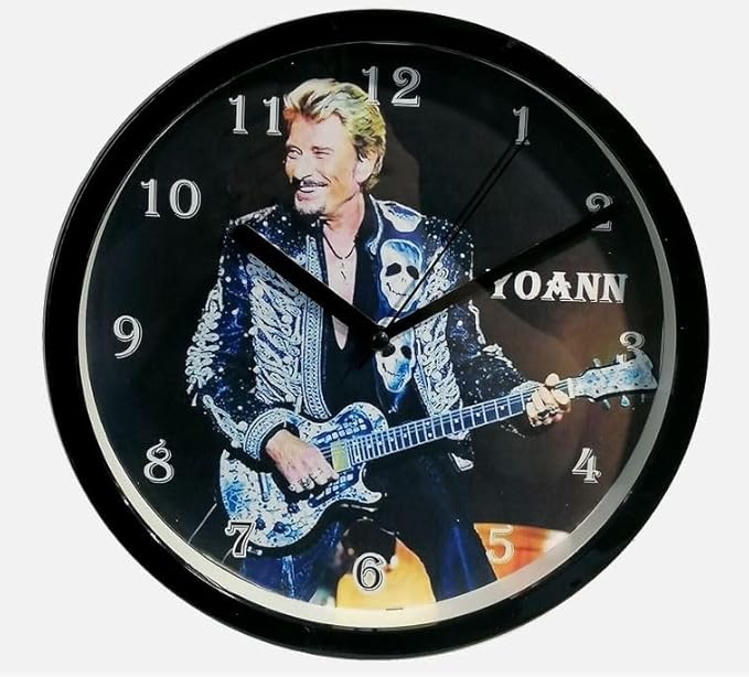 Present Horloge Pendule Murale Johnny Hallyday. Personnalisé Un prénom. Diamètre 22 cm.