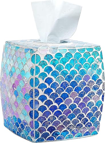 Whole Housewares Boîte à Mouchoirs Décorative Rectangulaire avec Finition Sirène en Verre Mosaïque - Porte-Distributeur De Mouchoirs en Papier Carré pour Toutes Les Pièces De La Maison