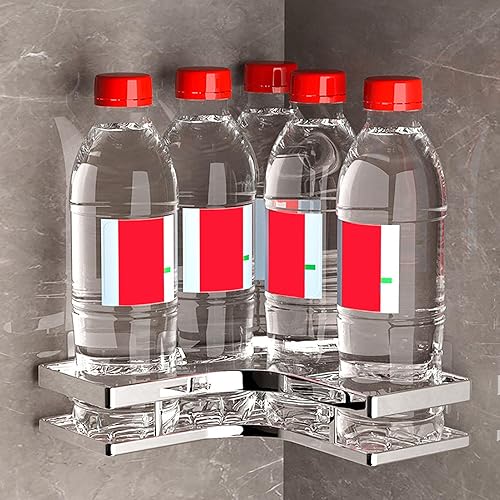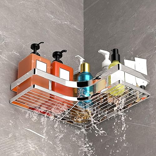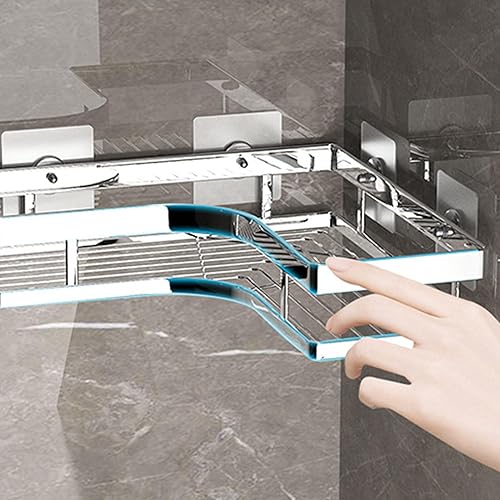 Jenngaoo Étagère D'angle de Salle de Bain, en Acier Inoxydable, Sans Perçage, Support de Rangement Mural pour Panier de Rangement de Douche Avec Adhésif Sans Trace pour Douche, Toilettes