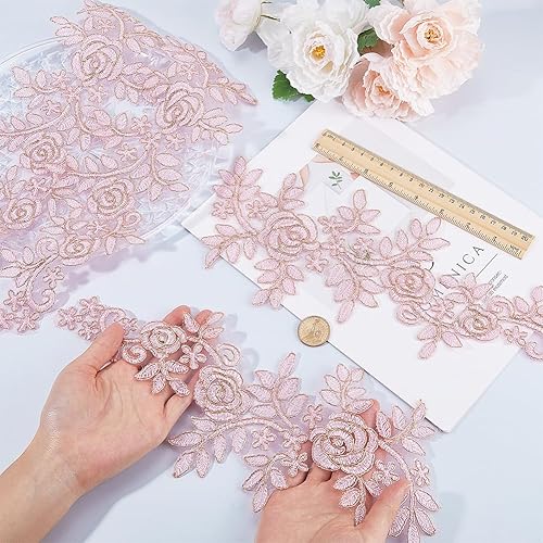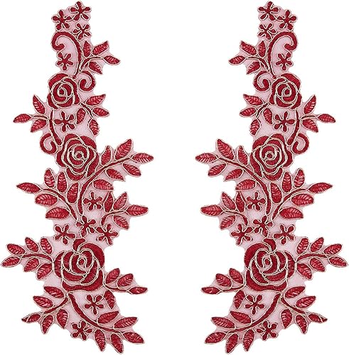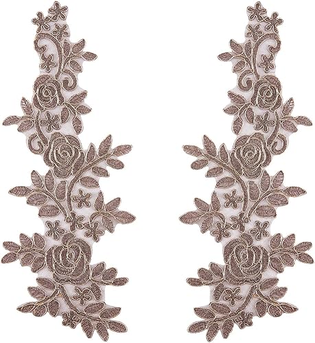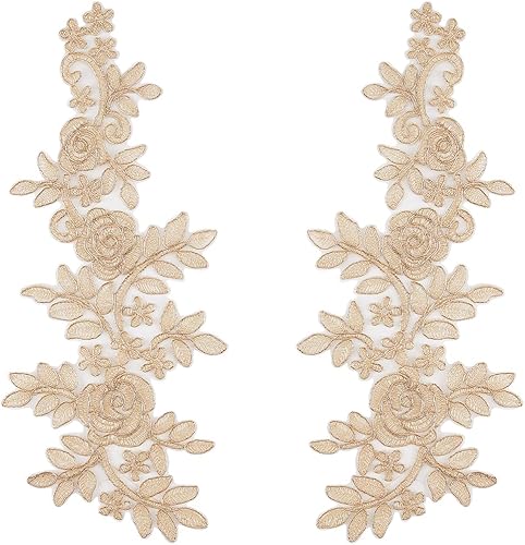 GORGECRAFT 2 Paire Patchs en Dentelle de Fleurs Brodés 3D Feuilles Florales Décoratives à Coudre sur Patch Bricolage Collier Tissu à Coudre Applique pour Robe de Mariée Costume Chapeau Sac Jean Blé