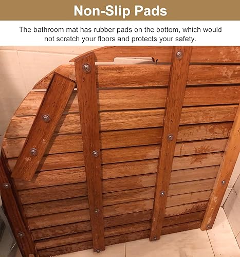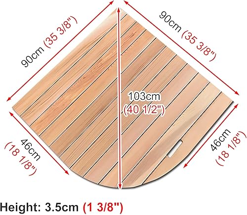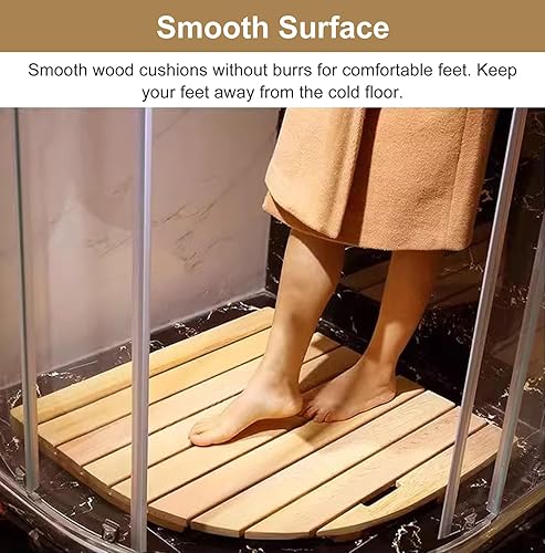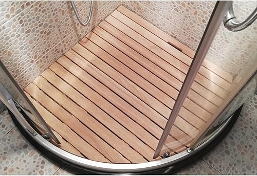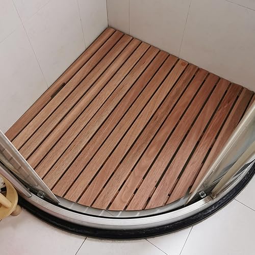 Tapis de Bain en Bois Naturel antidérapant, Grand Tapis de Sol de Salle de Bain, Plateforme de Douche d'angle Robuste avec égouttoir, Personnalisable, Bois foncé, 27,5 x 27,5 Pouces
