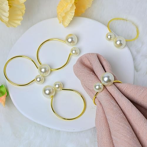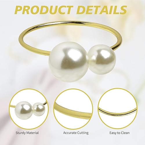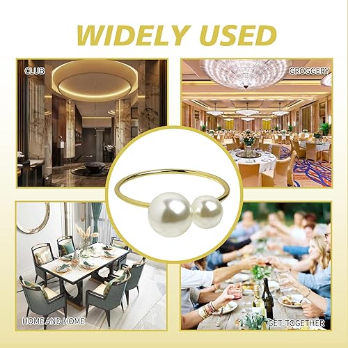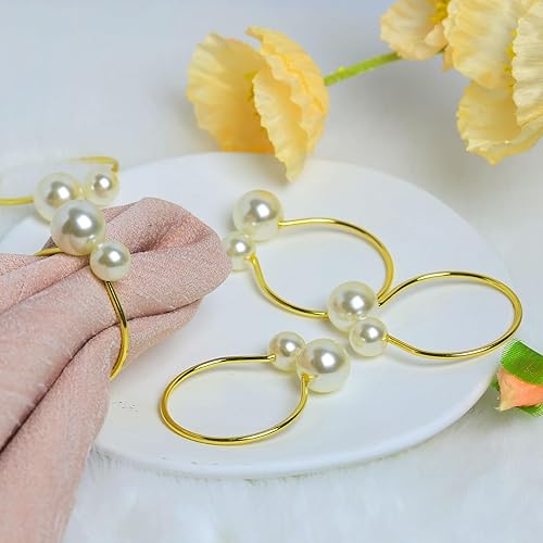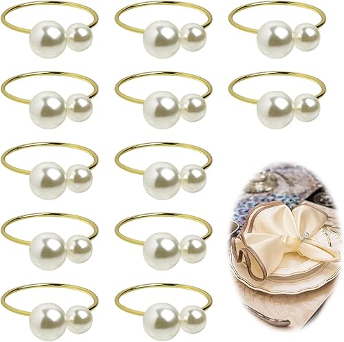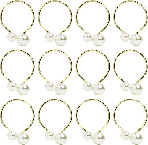 Lot de 12 Ronds de Serviette Dorés avec Perles, Style Vintage, Décoration de Table Élégante pour Mariages, Fêtes, Noël, Anniversaires, Diamètre 4 cm