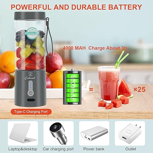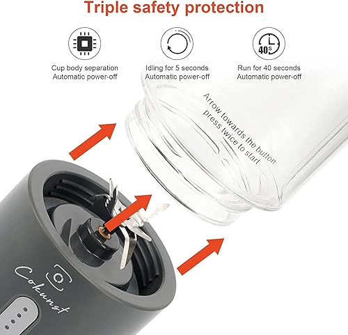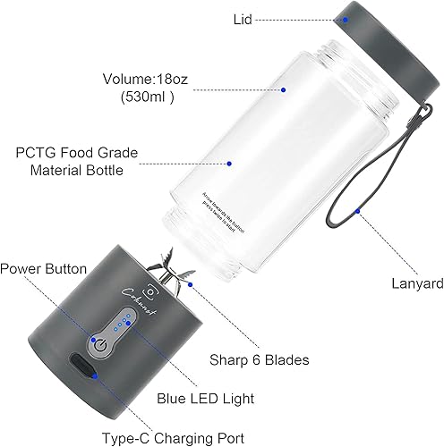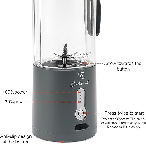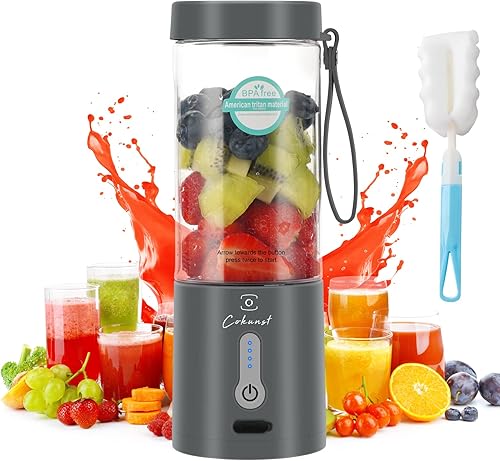 Portable Mixeur pour Smoothies et Shakes, COKUNST 530ML Mini Blender avec Type-C Rechargeable et 6 Lames, 4000mAh Fruit Mixer Juicer Personnel Portable Blender Cup pour Voyage Cuisine