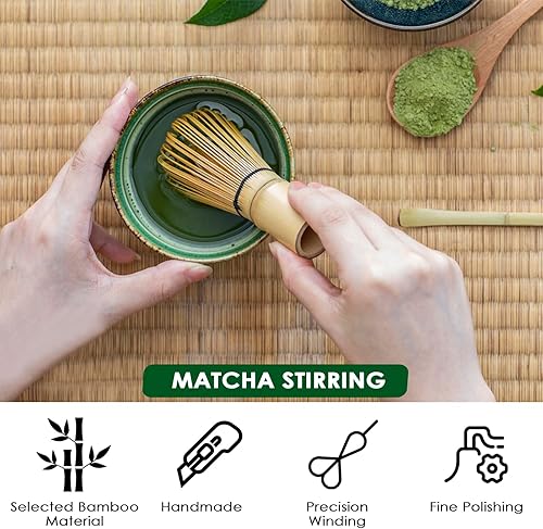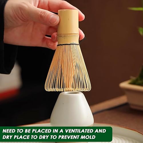 Dalephoric Fouet Matcha Bambou Naturel, Fouet à Matcha Chasen Traditionnel de 100 Bâtons, Porte Fouet, Agitation Manuelle, Réutilisable, pour la Cérémonie du Thé, la Boisson (10,5 x 6,2 cm)