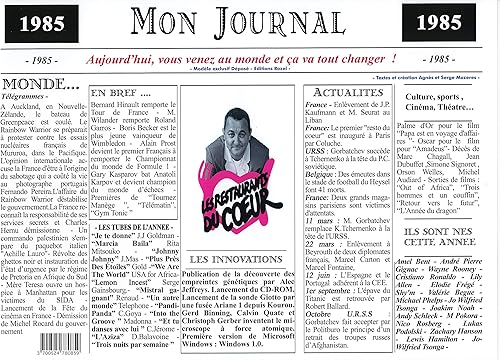Générique Set de Table année 1985 - Mon Journal - plastifié - Année de Naissance ou Anniversaire - Idéal pour Cadeau