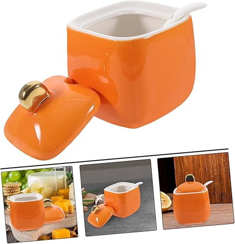 Ciieeo Boîte À Condiments En Céramique Orange De 300 Ml Avec Support Pour Condiments Pour Cantine Domestique