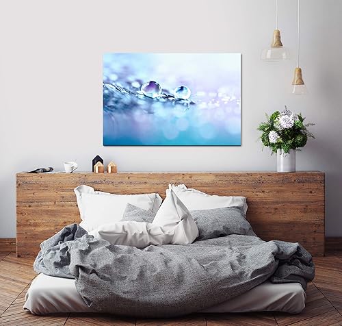 Paul Sinus Art Image murale sur toile, motif gouttes d'eau sur une plume, 120 x 80 cm, art photographique inspirant, de qualité musée, pour votre foyer