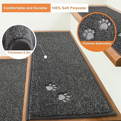 BEQHAUSE Lot de 4 tapis d'escalier antidérapants lavables en machine pour enfants, personnes âgées et animaux domestiques, 100 % polyester, gris foncé - 22 x 71 cm