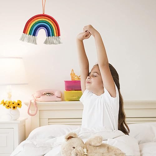 Tenture Murale tissée Arc-en-Ciel, Arc en Ciel Macramé, Tapisserie Murale en macramé Arc-en-Ciel, Suspension Murale en Forme d’Arc-en-Ciel en macramé tressé pour Chambre d'enfant, Maison Décor