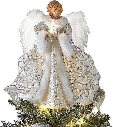 Topper Sapin Noël Ange, 30cm Ange Pointe Sapin Noël Lumineuse Étoile, Cime De Arbre De Noël Figurine d'ange, Pointe De Sapin De Noël avec Lumière LED, pour Décorations De Fête À Domicile