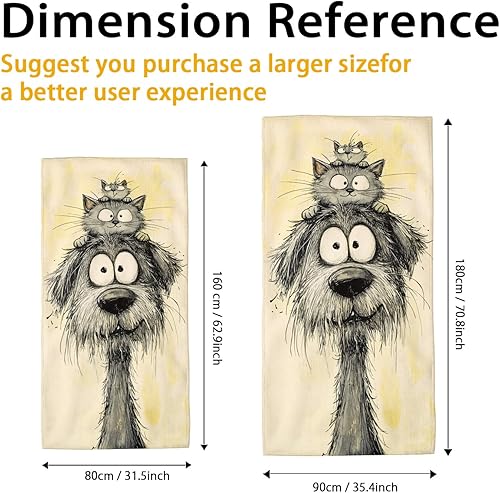 Serviette de plage en microfibre motif chat et chien mignon, illustration de dessin animé, séchage rapide, absorbante, anti-sable, légère, idéale pour les pique-niques, les vacances, 177,8 x 88,9 cm