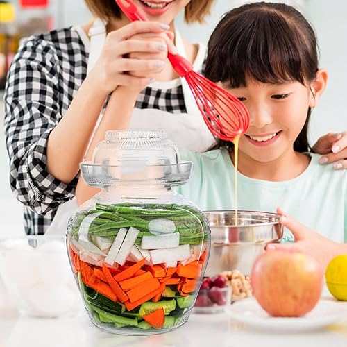 Kichvoe Pot De Fermentations en Verre Pot De Traditionnel Pot De Kombucha À Large Bouche Pot avec Joint d'eau Boîte De Stockage D'étanchéité pour Cornichons Choucroute Kimchi