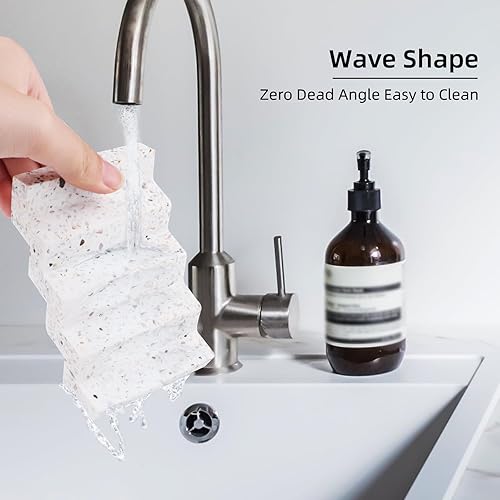 Svitzoot Porte-Savon Céramique Avec Égouttoir Deux Faces Ondulé Marbre Élégant pour Douche, Cuisine, Salle de Bains