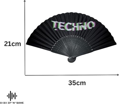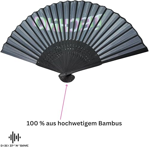 Techno Rave Lot de 2 éventails à main en bois de bambou noir - Décoration asiatique pour anniversaire, fête, club, festival, rave, mariage, photographie, décoration murale