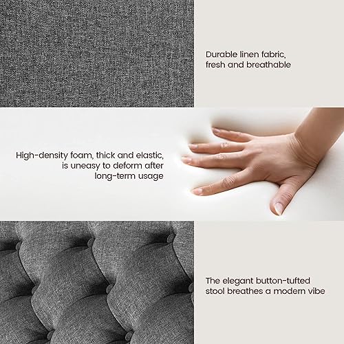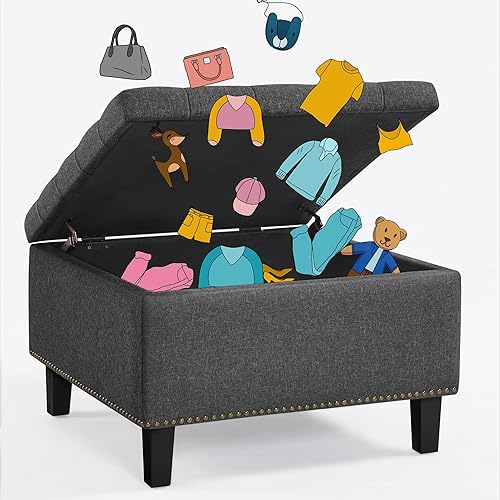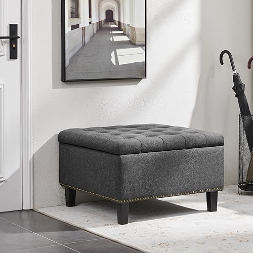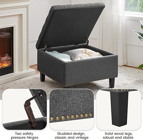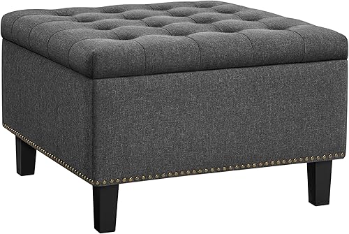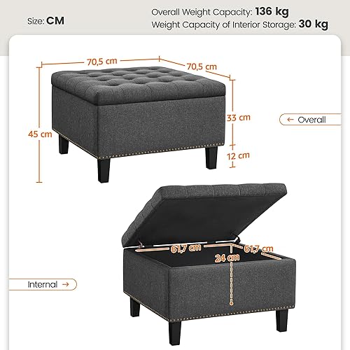 Yaheetech Cube Banc de Rangement Coffre de Rangement en Tissu Repose-Pieds avec Assise Rembourrée Relevable Capitonnée 70 x 70 x 45 cm Gris Foncé