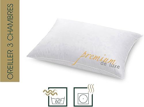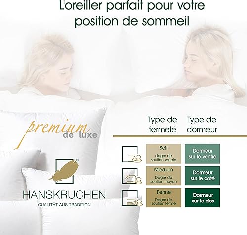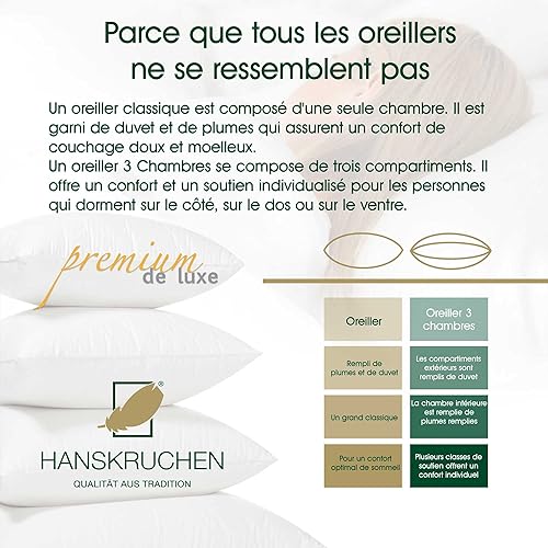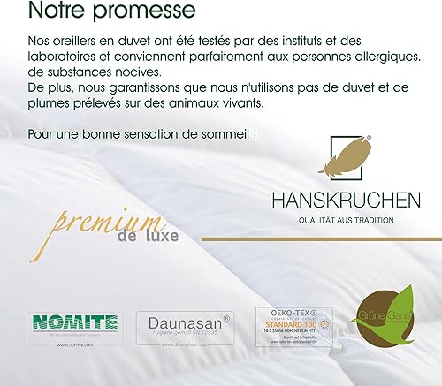 Hanskruchen Premium de Luxe Oreiller en Duvet 60 x 90 cm - Fabriqué en Allemagne - 100% Coton - 3 Compartiments - pour Les Personnes souffrant d'allergies
