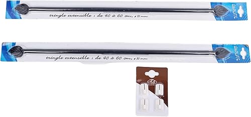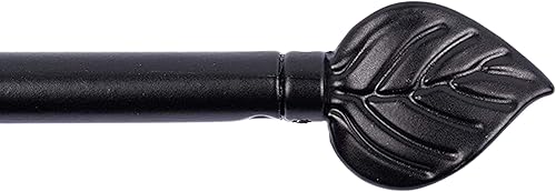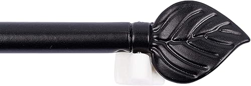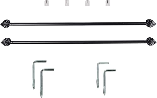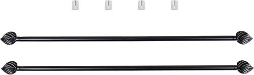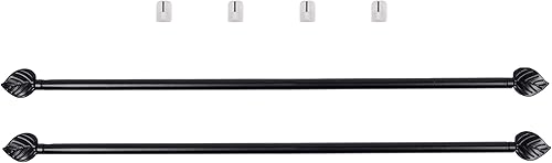 Lot De 2 Jolies Tringles A Rideaux Extensible 40-60 cm Décor de Feuille Noire avec 4 fixations adhésives + 4 Supports a Visser Pour Toutes Les fenêtres en bois,PVC, Aluminium Très Facile à poser