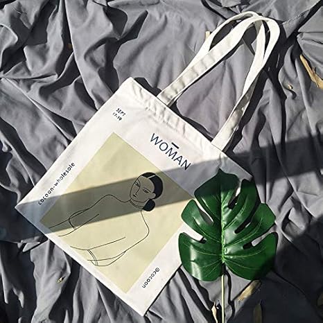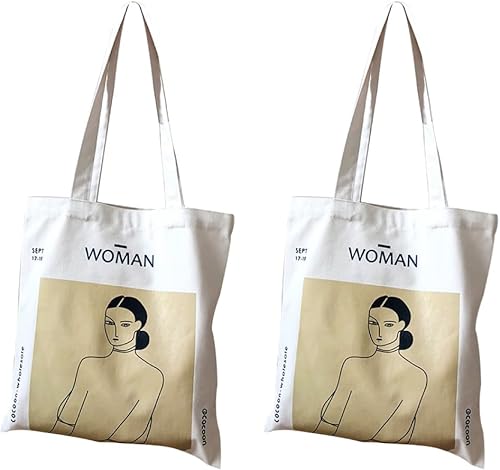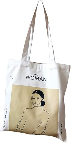 anaan Woman Sac cabas en coton pour femme avec poche intérieure – Tote bag imprimé à anses longues – Sac de courses sac à bandoulière