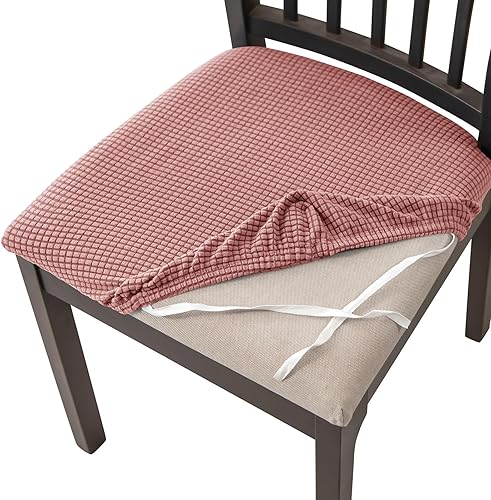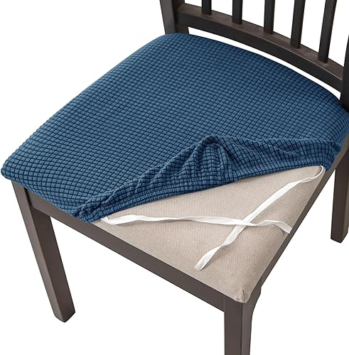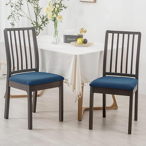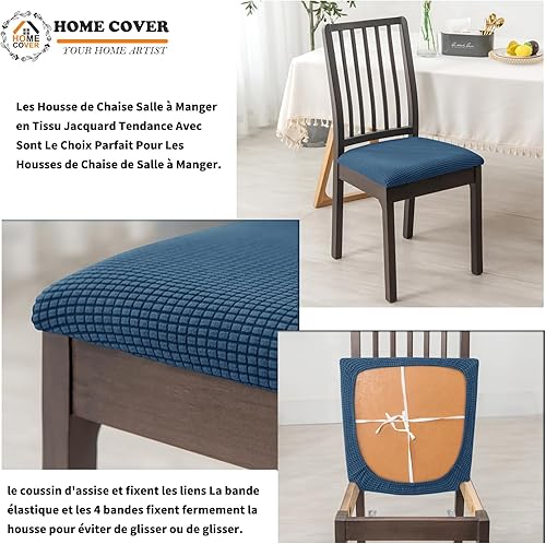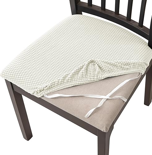 HOMECOVER Housse Assise Chaise Lot De 2,Extensibles Jacquard Housse De Chaise Amovibles Lavables pour Salle à Manger Cuisine Bureau Hôtel-Blanc-Lot de 2