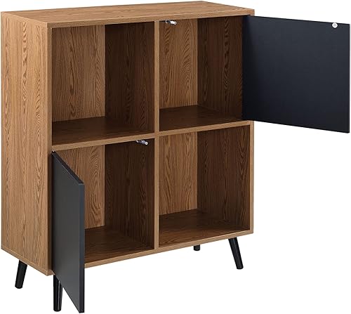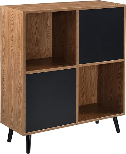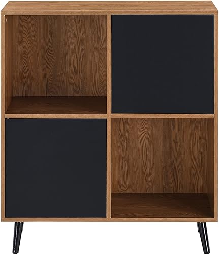 [en.casa] Meuble de Rangement Carré avec 2 Portes Touche-Lâche Capacité de Charge 20 kg Commode Design avec 4 Compartiments de Stockage Panneau de Particules 93 x 80 x 30 cm Effet Bois Foncé Noir