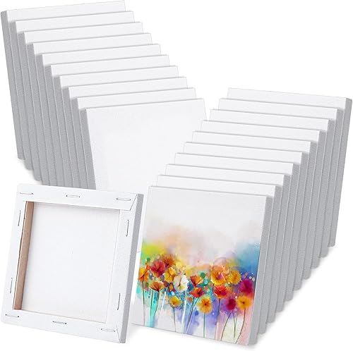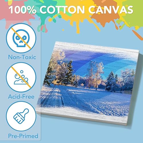 WOOLUCK® Lot de 50 Toile à Peindre 10x10cm,Coton Toile Vierge Pré-Étirée,pour peinture adolescents art enfants bricolage huile acrylique